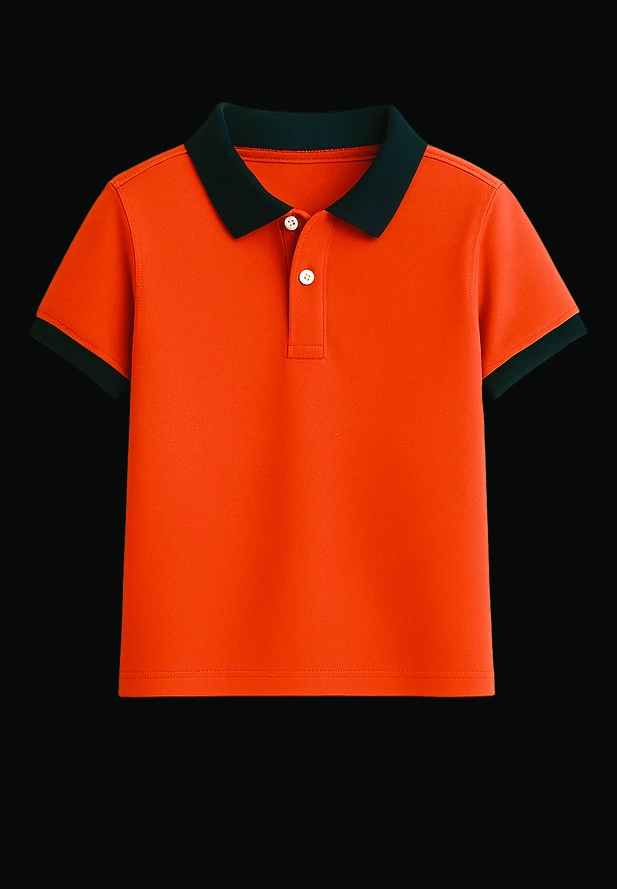sharp and timeless, this polo combines a rich orange hue with bold namy details for a polished, versatile look.