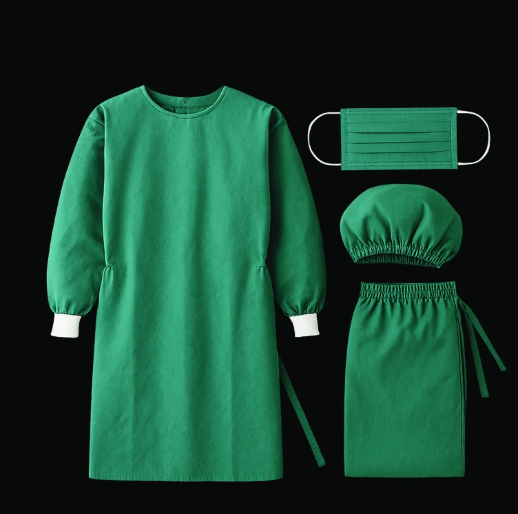 Is designed for complete protection and comfort in critical environments. Each se includes a fluid-resistant grown, mask, cap and trousers, all crafted from a lightweight, breathable fabric that ensures ease of movement and can withstand the demands of the operating room.